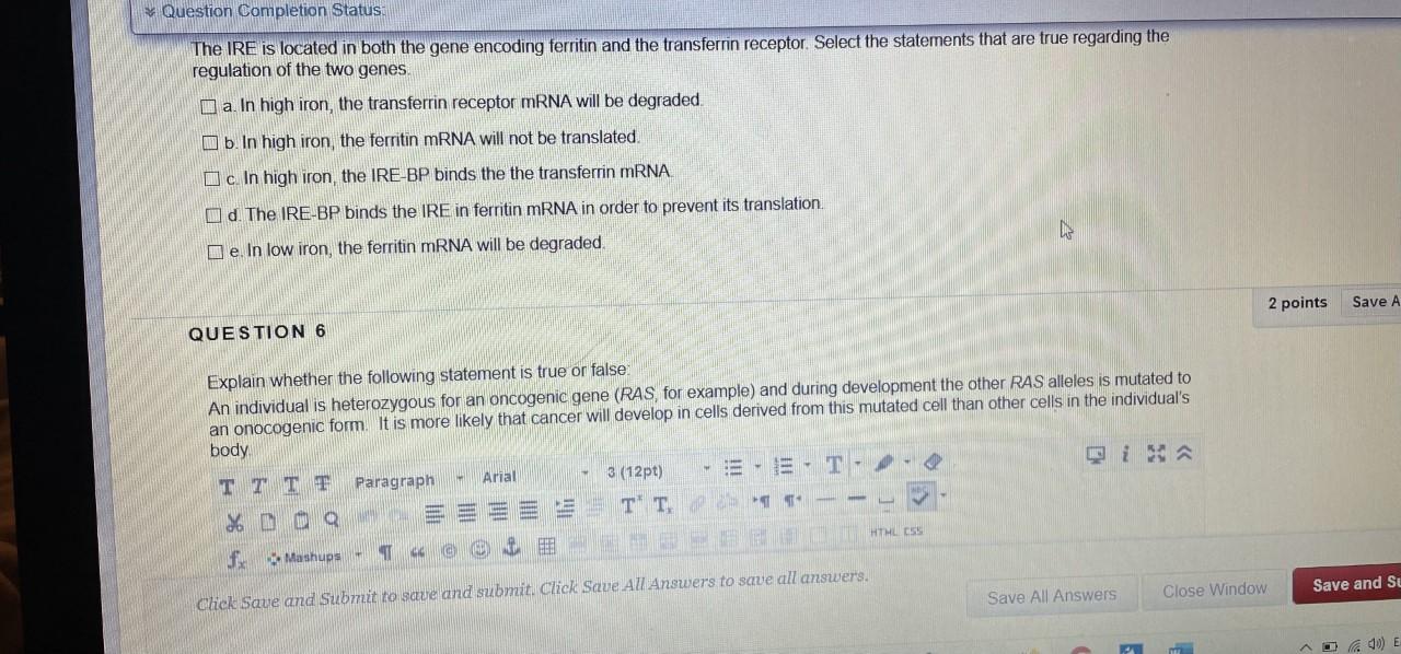 Ratings 100 36 36 out of 36 people found this document helpful. These proteins sense levels of iron in the transit pool and when iron in this pool is scarce they bind to stem-loop structures known as iron-responsive elements on the 5 untranslated region of the ferritin mRNA and 3 untranslated region of the transferrin mRNA. Biology questions and answers.